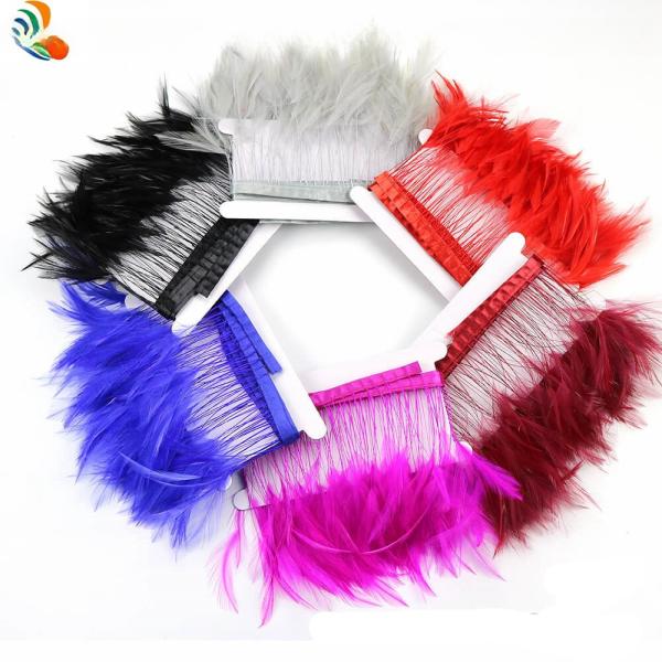 Dyed Pattern Party Decoration Stripped Hackle Feather Fringe Trimming with Satin Ribbon Tapes Images |